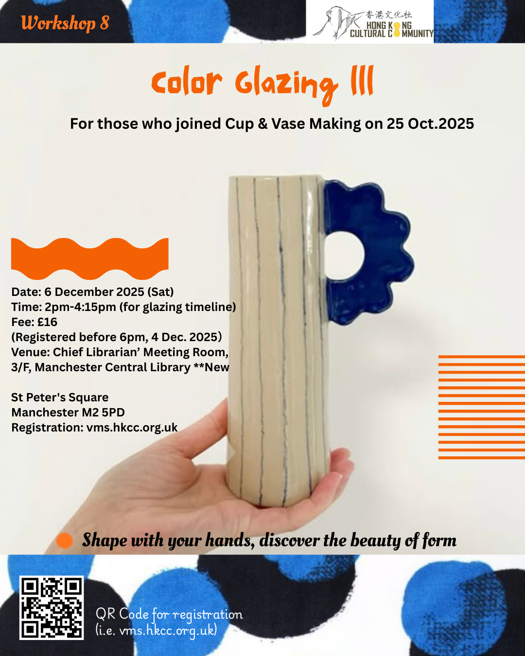 This Workshop is organised for those who joined “Cup & Vase Making on 25 Oct.2025), we are going to review how to apply color theory and the use of point, line and shape to decorate our cup or vase after bisque firing.